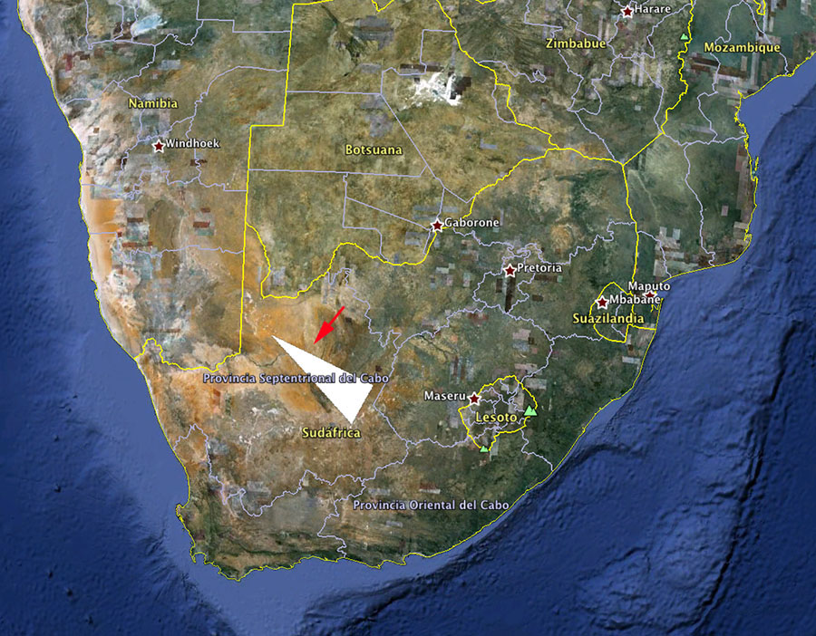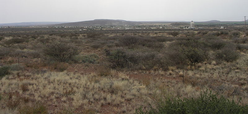 Las tierras donde crece, como la mayoría de los lithops, son pobres, secas y polvorientas, como puede apreciarse en esta pradera situada cerca de la ciudad de Prieska: