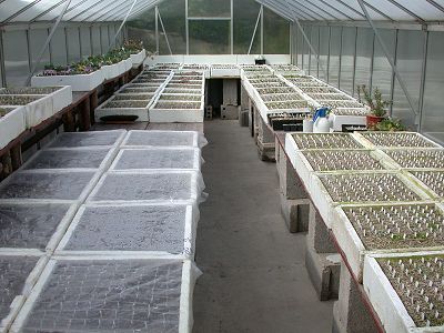 Para la siembra se necesita un sustrato con buen drenaje y sin nutrientes (sin muchos nutrientes). Yo uso pumice sin absolutamente nada más, pero si no se tiene acceso a pumice puede emplearse cualquier tipo de grava de 1 a 4 mm de tamaño, con un pH no superior a 7. Yo evito rigurosamente el uso de tierra de turba o cualquier otro substrato que la mayoría de las plagas necesiten para sobrevivir. Además, elimino todas las partículas demasiado pequeñas para asegurar que las raíces de las plántulas podrán crecer directamente hacia dentro del sustrato, en lugar de arrastrarse por encima del suelo. Antes de la siembra, el suelo debe ser esterilizado para evitar que germine cualquier tipo de mala hierba. Esto se hace fácilmente en un horno a 200 ° C durante una hora. Este sustrato se usa para llenar macetas o bandejas y será completamente humedecido con agua de lluvia. Si se utiliza agua corriente hay que asegurarse de que no contenga calcio. Las semillas son esparcidas en la parte superior de la tierra húmeda. Las semillas deben dejarse sobre la superficie de la tierra húmeda, sin enterrarlas. La densidad óptima es de aproximadamente 10.000 semillas por metro cuadrado. Las macetas o bandejas se deben cubrir con un plástico delgado y se mantiene en un lugar sombreado a una temperatura constante de unos 15° C (no más de 20° C). Una ventana en un cuarto con temperatura controlada permite una mejor germinación que una siembra en el invernadero, donde el clima será demasiado caluroso y soleado y los días serán más calurosos que las noches. Después de dos semanas el proceso de germinación habrá terminado y los contenedores podrán ser descubiertos.