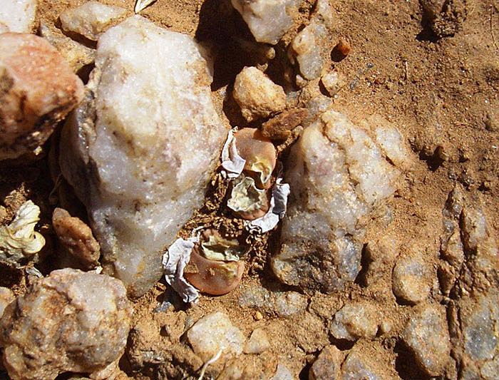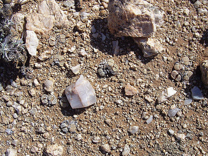 Las plantas crecen en una zona relativamente plana, entre las piedras de calcrete de color blanco grisáceo y en un sustrato arcilloso de color marrón rojizo. (Nota: calcrete creo que es "carbonato de calcio junto otros materiales tales como grava, arena, arcilla y limo")