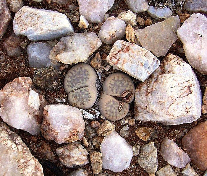 Las plantas se mimetizan perfectamente con las piedras que hay a su alrededor tanto en color, como en forma, como en tamaño.
