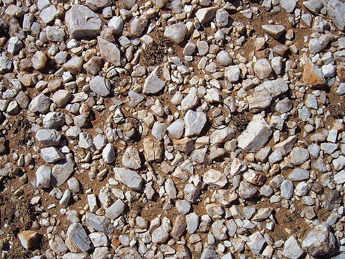 El suelo en el que crecían estaba formado por grava, de un color entre gris y blanco, y piedra.