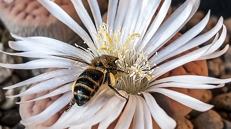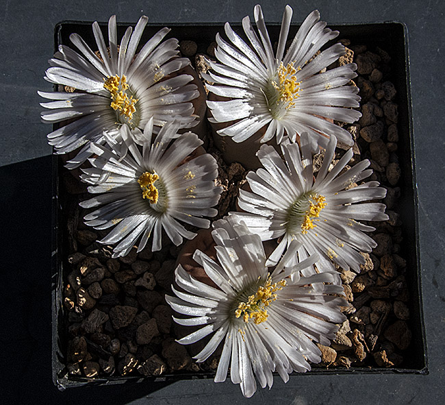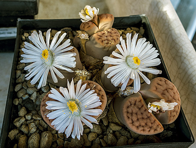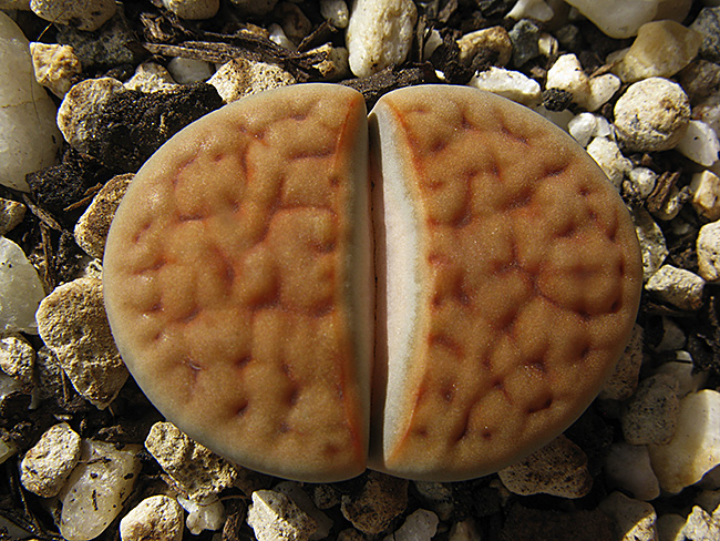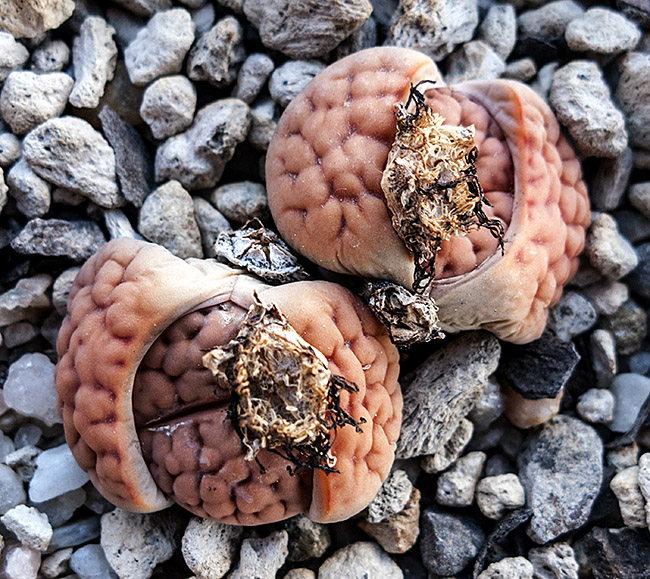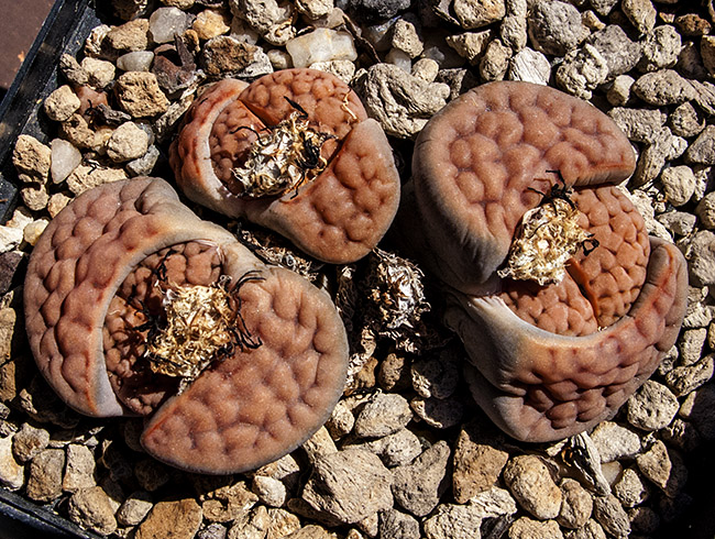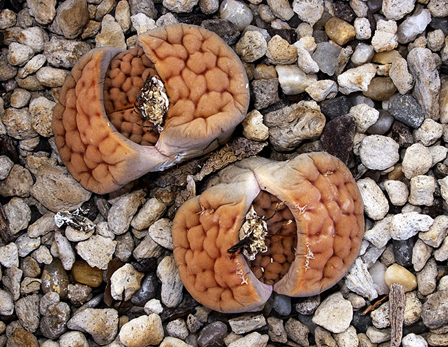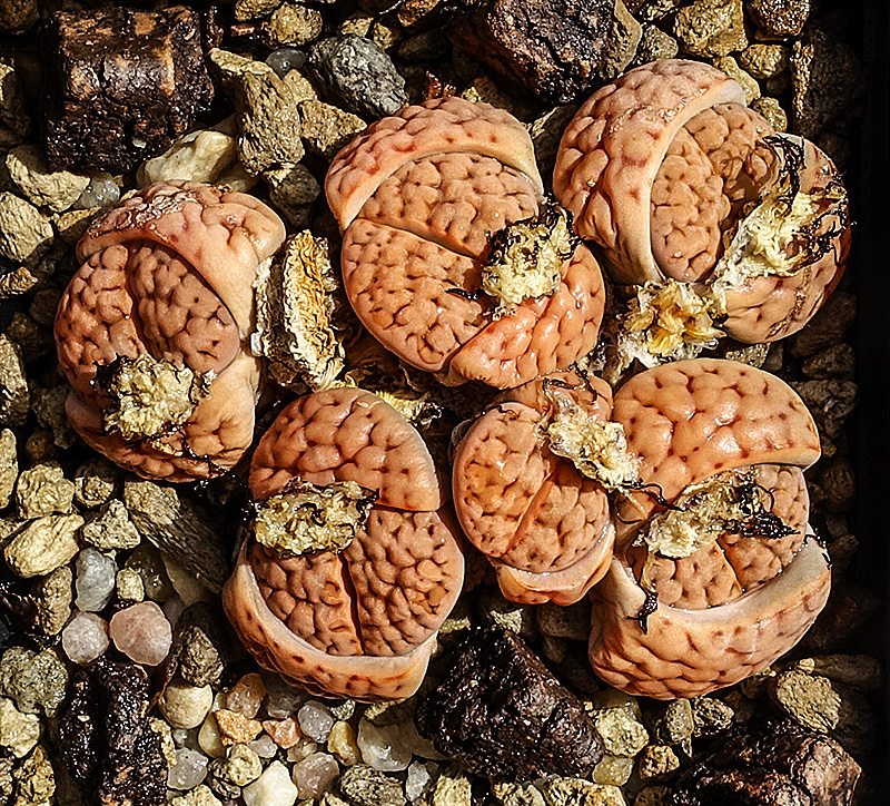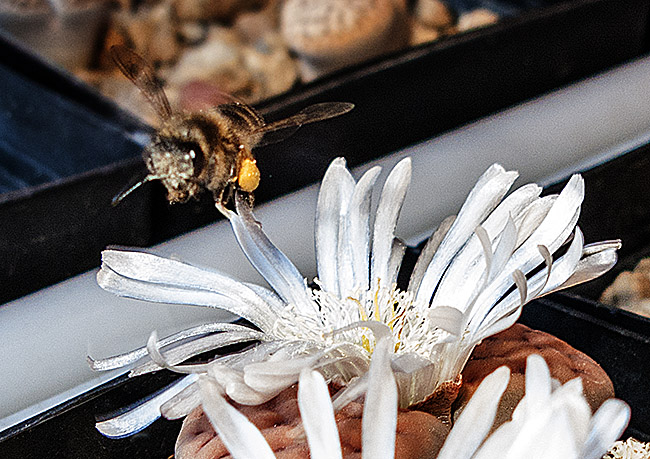 7 de noviembre de 2015 (Obviamente no eran músculos sino polen . . . ¡una buena cantidad de polen procedente de mi Lithops karasmontana (orange) . . . y puede que de algún otro Lithops de mi colección . . . ¡incluso puede que de algunas flores de otras plantas de cualquiera de mis vecinos! . . . ¡quien sabe en cuantas flores habría estado antes de que yo la viera!)