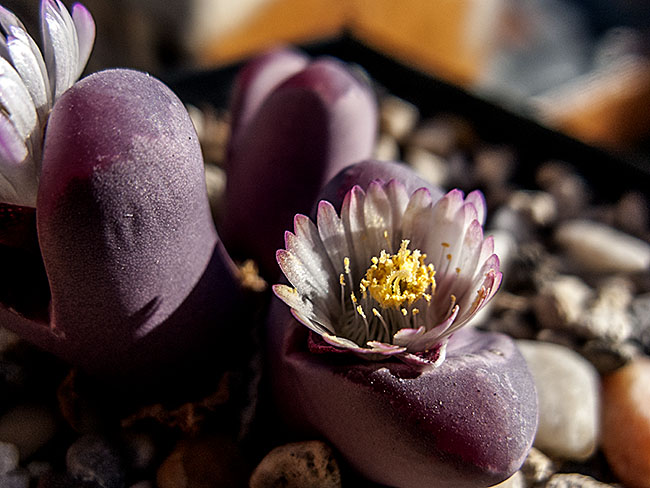 25 de enero de 2014 (En esta maceta tengo tres ejemplares, el que floreció en primer lugar ya tiene la flor un poco estropeada, pero este segundo ejemplar tiene la flor en todo su esplendor.)