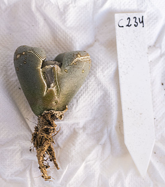 1 de junio de 2014 (No me gusta dar por muerto un Lithops, hasta que no está realmente muerto, pero este ejemplar no tiene futuro.)