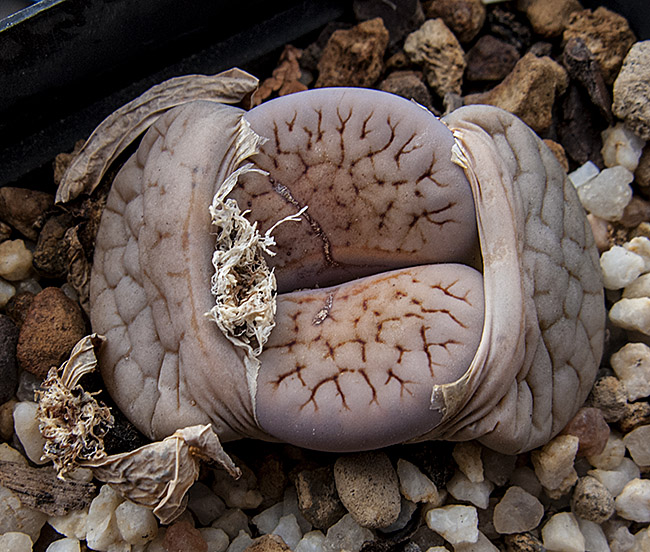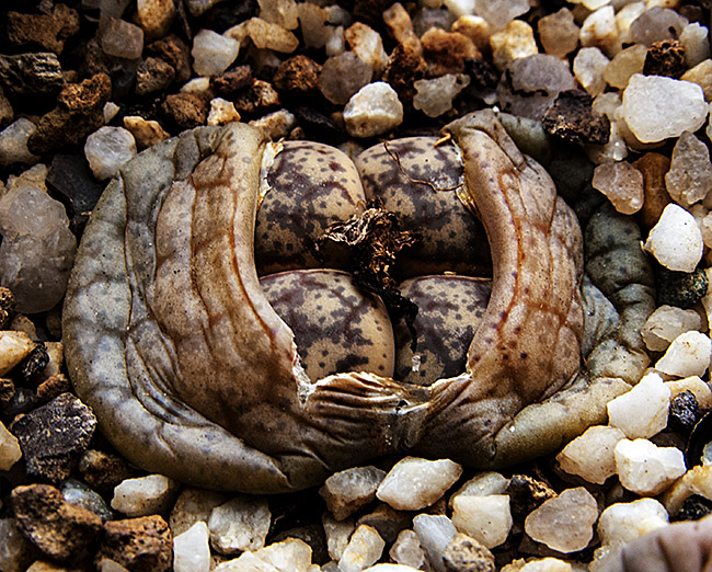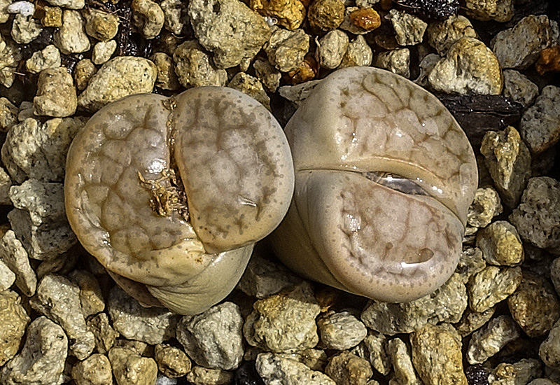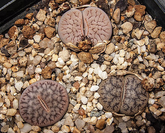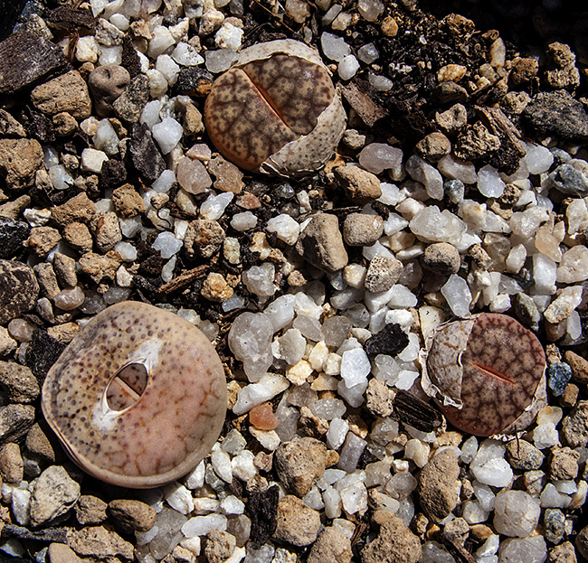 8 de abril de 2018 (Uno de los Lithops pseudotruncatella está haciendo una muda doble.)