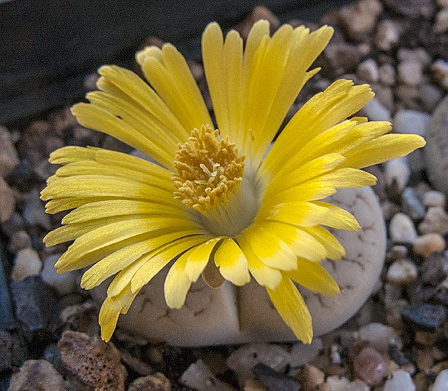 6 de junio de 2017 (Uno de los Lithops pseudotruncatella ya ha florecido. ¡Siempre de los primeros!)