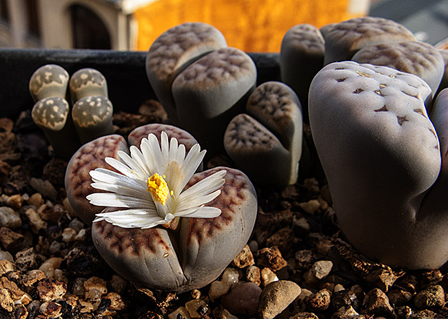 16 de octubre de 2016 (Ya ha florecido uno de los ejemplares de esta maceta con diversos Lithops karasmontana.)