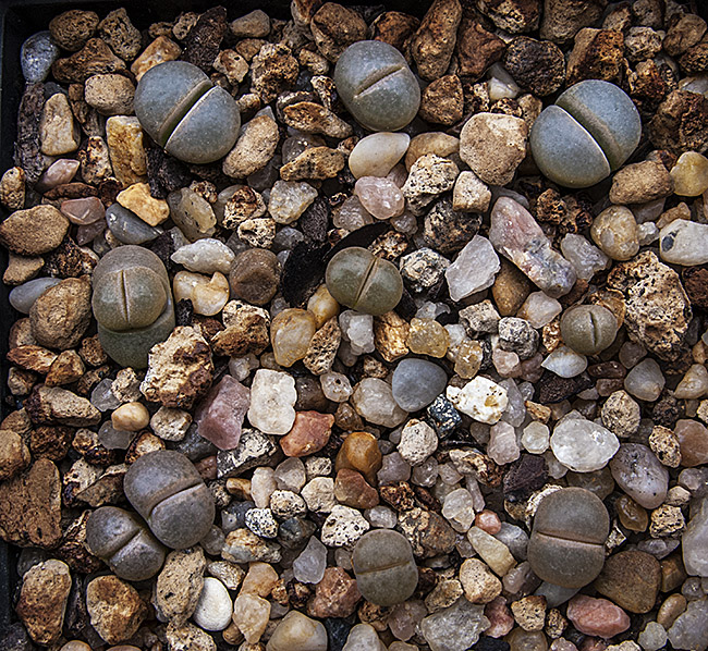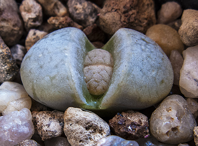 29 de octubre de 2015 (206 días después de haber sembrado (es decir, casi siete meses después). Estoy muy, muy interesado en este grupo de Lithops. Afortunadamente están evolucionando muy bien.)