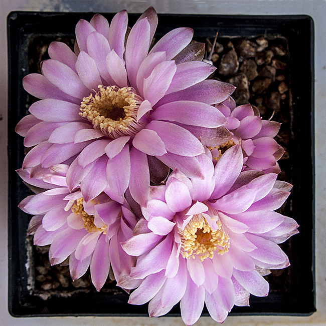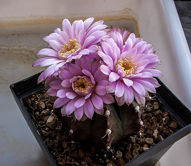 12 de julio de 2017 (Tres nuevas flores. Fotografía tomada con luz natural, en la que se puede apreciar mejor el color rosa pálido de las flores.)