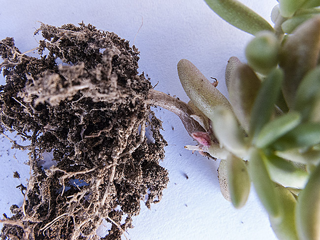 6 de marzo de 2017 (Tiene un pequeñísimo tronco, sin fuerza para sostener a toda la planta, y unas raíces abundantes.)