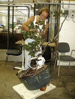 Al final de esta página se reproducen un par de fotos de Marc Keteleer trabajando un árbol y de otro árbol hecho por él que, según creo, ganó un premio en un concurso europeo de bonsáis.