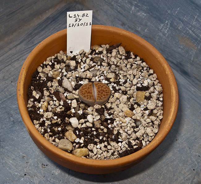 De nuevo recibí una contestación tan escueta como precisa: "El trasplante de un ejemplar de esta especie es siempre un riesgo: la planta puede morir antes de aclimatarse a la nueva maceta si se comente el más mínimo error - ¡me alegré de haber usado una maceta grande! - Este Lithops debe ser regado también en invierno, él no descansa durante esa estación como el resto de los lithops".