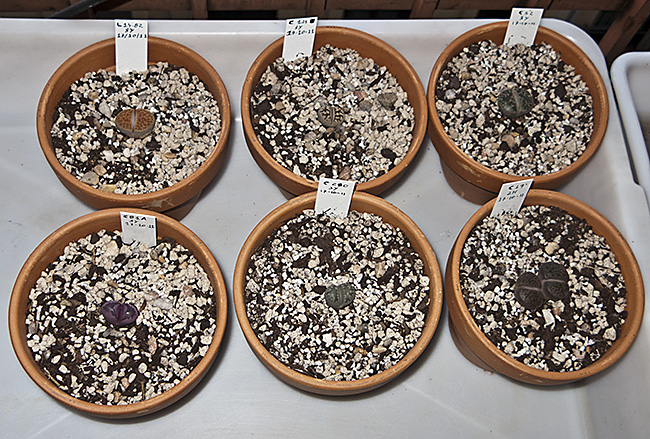 Después de hacer fotos de todo, me dediqué a plantar todos los lithops en macetas de barro de un tamaño bastante grande (tengo la pretensión que de que sigan conmigo durante bastante tiempo y así, supongo, evitaré tener que trasplantarlos en muchos años, en cuanto al sustrato empleado . . . bueno, eso será tema para otro Caso Práctico diferente.