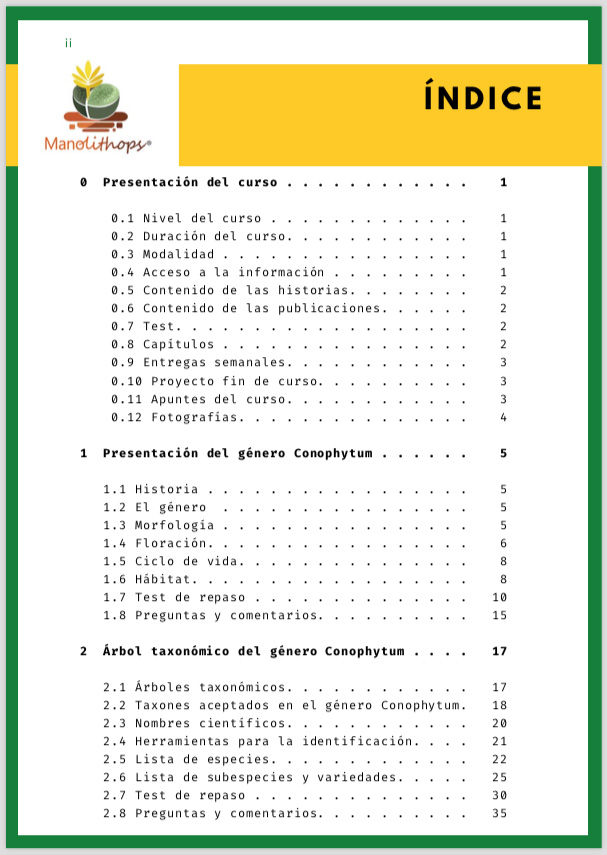 Documentación completa del curso básico de introducción al género Conophytum, que se impartió en Instagram en el primer trimestre del año 2021.