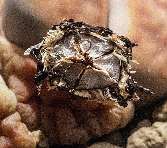 18 de mayo de 2013 (Como puede verse en esta ampliación de la foto anterior, la cápsula contiene cinco lóculos con semillas. La polinización de esta planta se realizó el 5 de noviembre del año pasado, utilizando polen procedente de una flor recién abierta del ejemplar ml-008, un Lithops karasmontana ssp. karasmontana v. karasmontana (orange).)